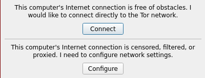 ثم انقر على البرنامج ضغطتين وستظهر لك نافذه وفيها Connect يعني اذا كنت لا تواجه مشاكل في اتصالك المباشر بتور استخدمه, او Configure اذا كنت تواجه مشاكل ومنه يمكنك استخدام جسور تور, حالتي ساضغط على Connect: