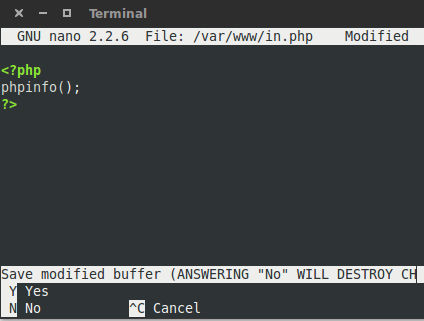 عند الانتهاء، قم بحفظ الملف وإغلاقه عن طريق الضغط على “CTRL-X”. سيكون لديك فرصة لتأكيد حفظ بكتابة “Y” ثم ضغط على “ENTER”