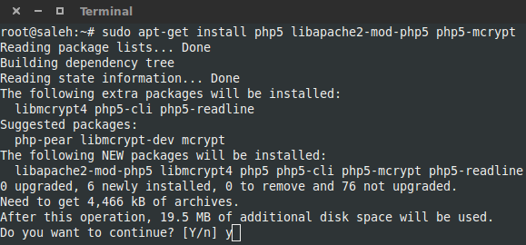 sudo apt-get install php5 libapache2-mod-php5 php5-mcrypt
