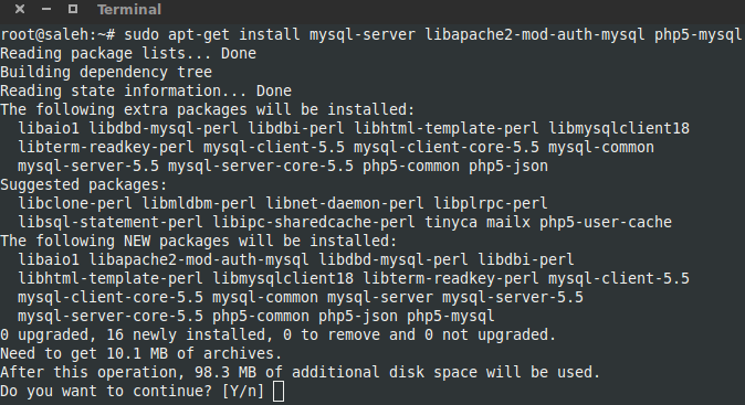 sudo apt-get install mysql-server libapache2-mod-auth-mysql php5-mysql