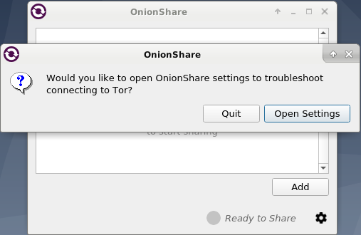 يجب عليك ان تقوم بتشغيل متصفح تور ثم تفعيل هذه الخاصيه , وسيقوم باستخدام اعدادت تور التي تاتي مع المتصفح بدلا من الذي ياتي مع onionshare.