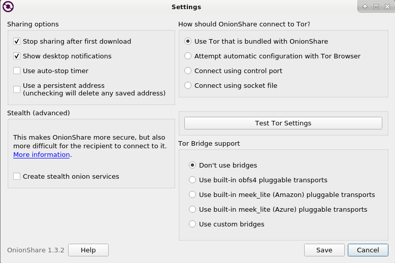 OnionShare (المشروح هنا 1.3.2 ولكن لن يفرق الكثير عن 2.2 فما فوق)