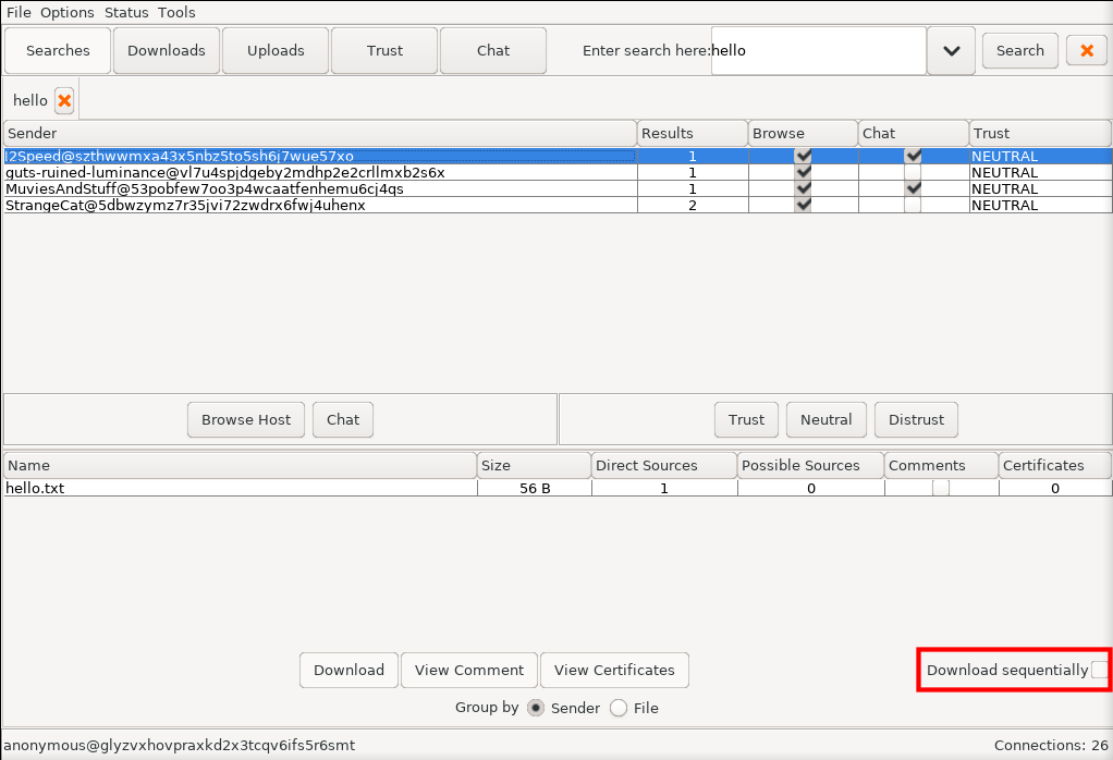 - نجرب نبحث عن شيء وسيظهر بالشكل الموضح بالصوره. خاصيه مميزه وهي Download sequentially وهذه الخاصيه مهمه عند تنزيلك للفيديوهات وهي تجعلك ترى الفيديو وهو في بدايات تحميله وحتى وان لم يكتمل مثلا وصل 5% تستطيع ان تفتح هذه الكميه فقط من الفيديو ولا تحتاج الى ان يكتمل التحميل بالكامل لترى الفيديو.