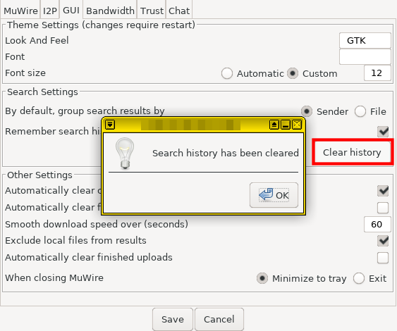 - ثم نضغط على GUI ثم نضغط على Clear history (وتستطيع منع تذكير ما تكتب برفع علامه الصح عن Remember search history)