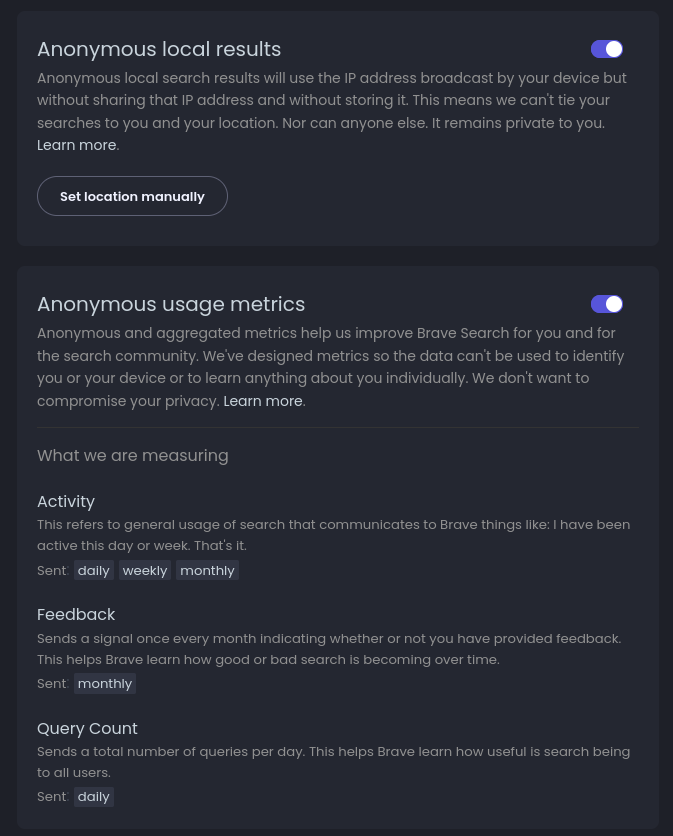 بريف يقوم بتجميع “احصائيات مع اخفاء المعلومات(anonymous)” و هي عن كيفيه استخدامك للمحرك