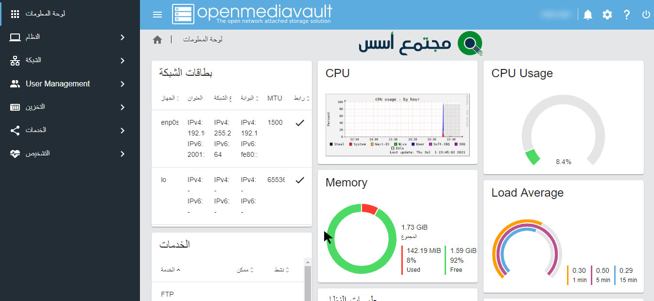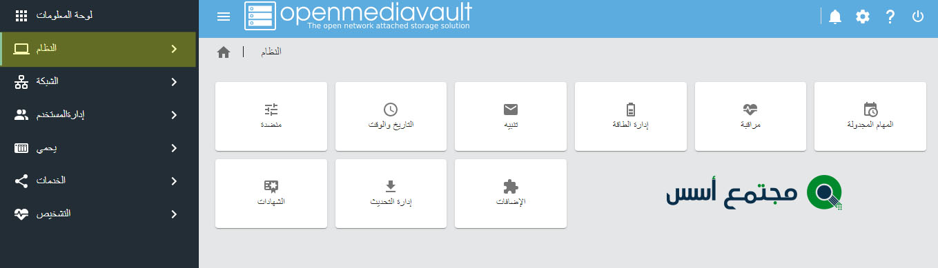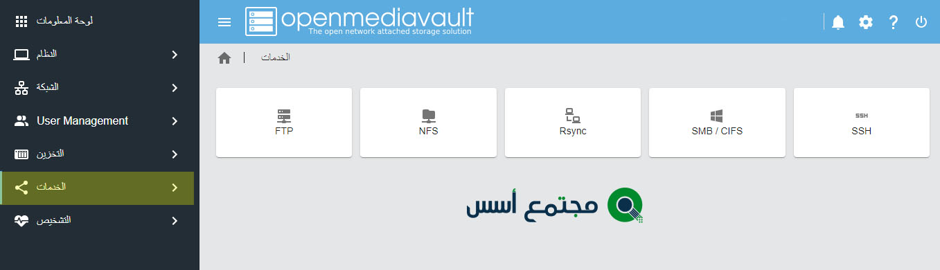 openmediavault هو نظام تخزين متصل بالشبكة (NAS) المبني على توزيعة Debian Linux يحتوي على العديد من الخدمات مثل SSH, (S)FTP, SMB/CIFS, DAAP media server, RSync, BitTorrent وغيرها الكثير, ويمكن تحسين الخدمات عبر المكونات الإضافية