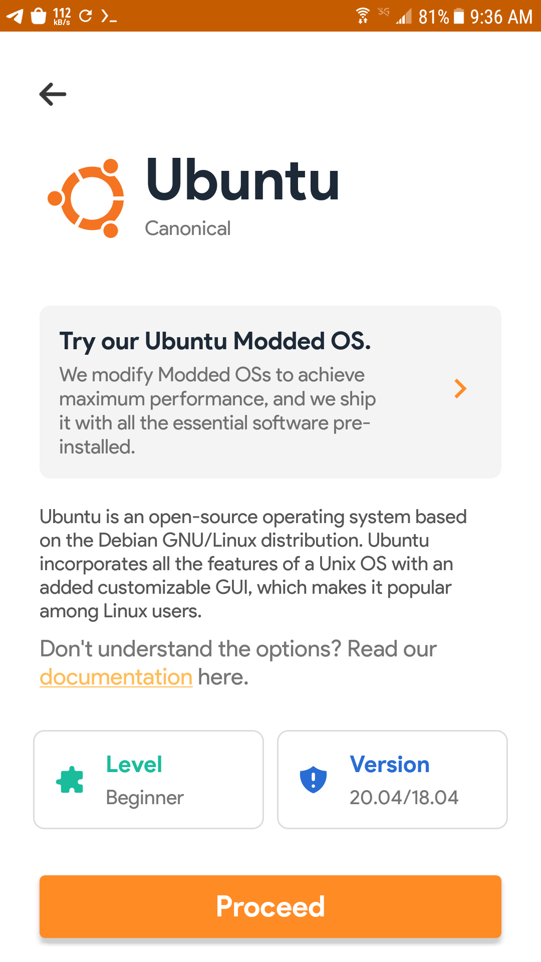 هذه هي التوزيعات المتوفرة لتثبيتها و في الاسفل قد تلاحظ وجود حقل باسم Andronix Modded OS وهذه توزيعات محسنه للعمل على هواتف اندرويد و باتوافقيه اكبر و استهلاك موارد افضل حسب كلام صانع/صانعي Andronix ولكن هذه التوزيعات او دعنا نقول امكانيه تثبيت هذه التوزيعات ليست مجانيه فهي مدفوعه ولكن سعرها رمزي سعرها اقل 2$ لكن هذه التوزيعات من مجموعه Andronix Modded OS ليست موضوعنا، نحن سنثبت التوزيعات المجانيه و التوزيعات المتوفرة كالاتي :