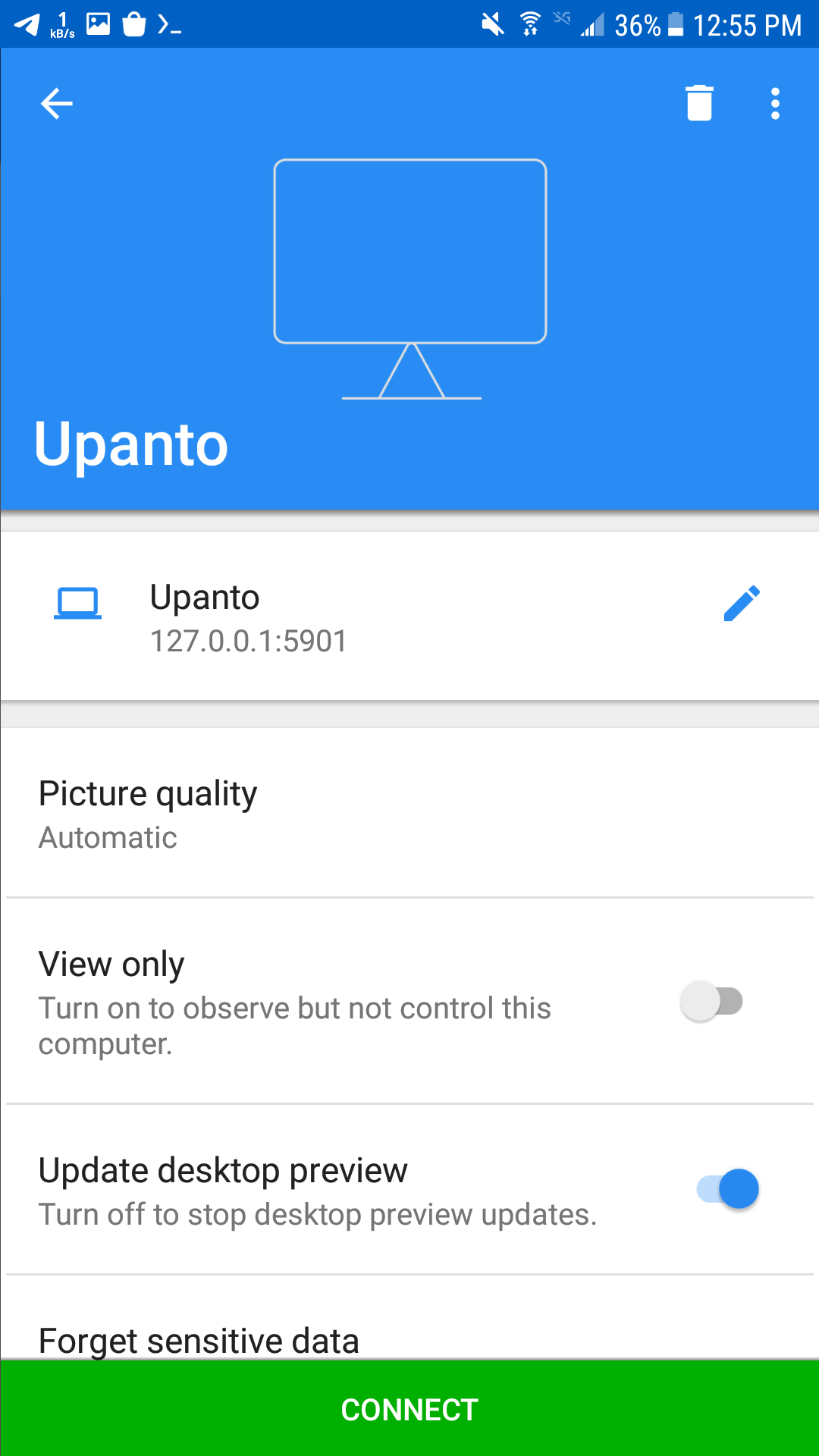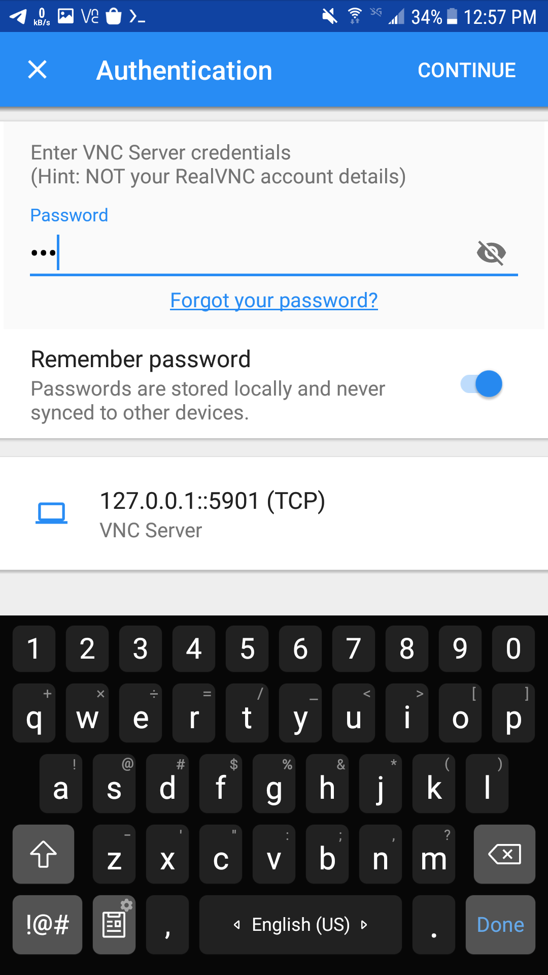 بعد دالك اذهب الى تطبيق VNC Viewer و اترك termux مفتوحه في الخلفيه و سيكون شكل تطبيق VNC Viewer هكذا :
