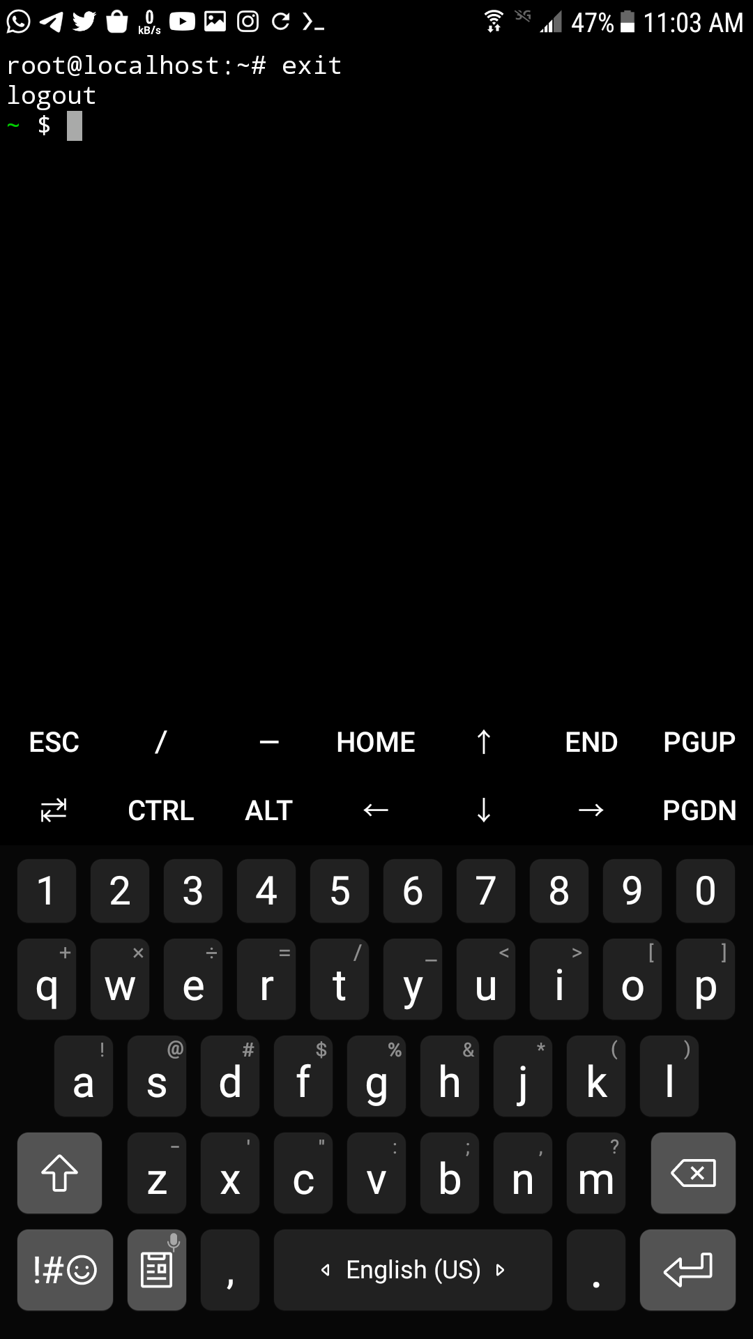 و اضعط inter و هكذا سوف تعود لطرفيه termux :