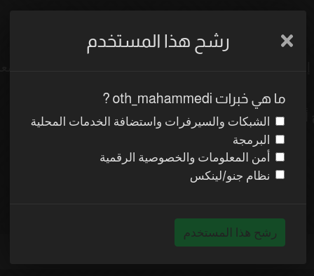بحيث لو ترون ان شخص لديه مواضيع مميزه وعميقه في احد اقسام مجتمع أسس. بامكانك ترشيحه حتى يصبح خبير في هذا القسم.