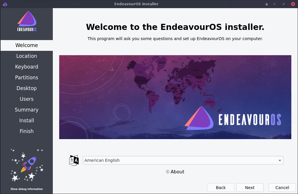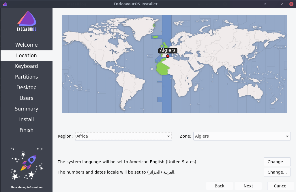 • مثبت Calamares: والذي يتميز بأنه أكثر سهولة في الاستخدام ويقدم حلاً عمليًا لتثبيت سطح المكتب الخاص بك مع جميع الخيارات الضرورية التي تحتاجها. كما أنه يدعم التثبيت عبر اﻷنترنت أو بدون أنترنت