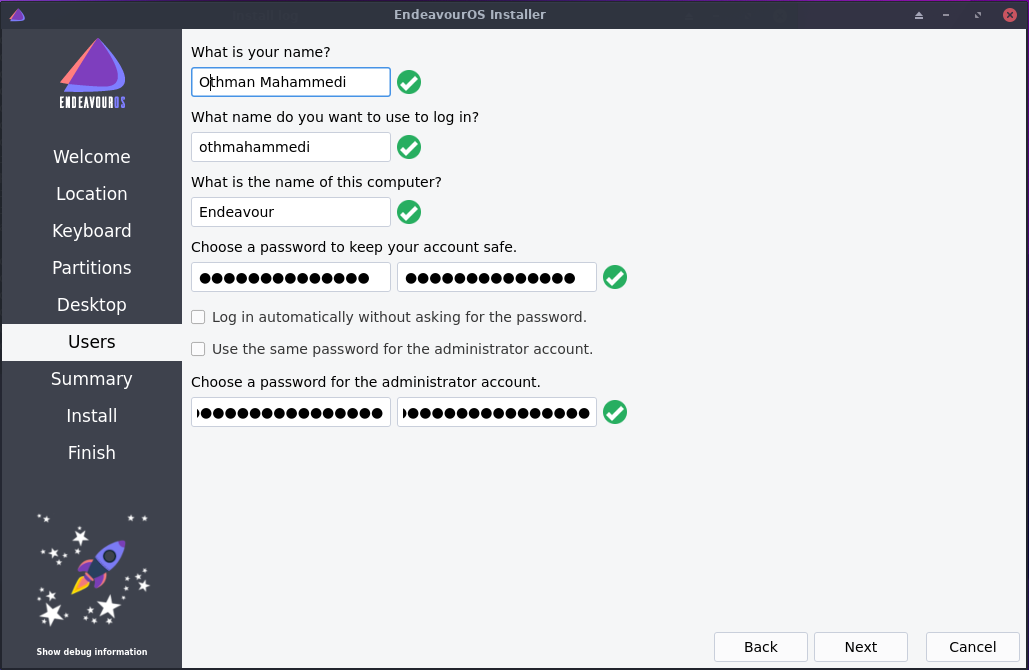 7. عملية تثبيت endeavour os: