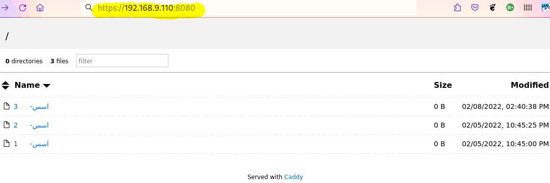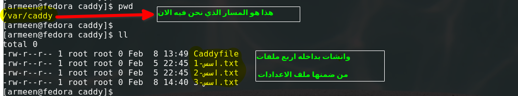 لذا للتاكدا نذهب للمجد الذي بداخله ملف Caddyfile: