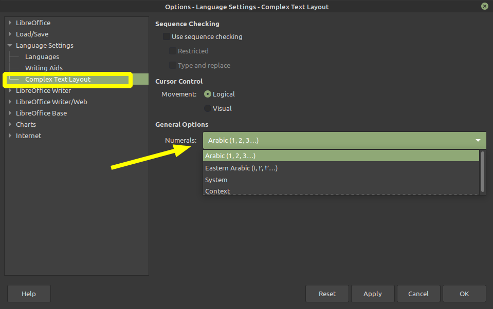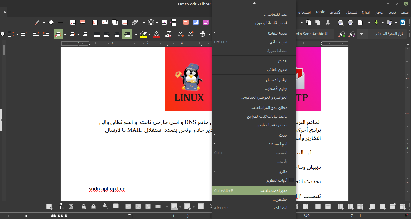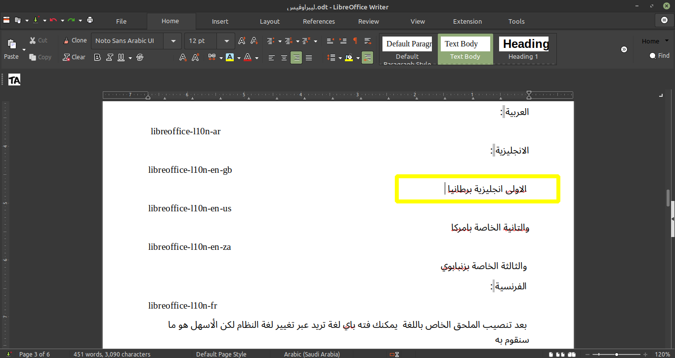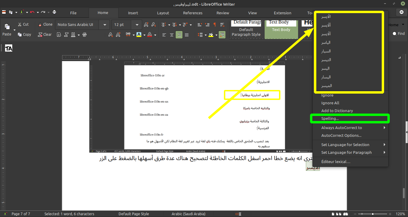 env LANG=ar libreoffice
