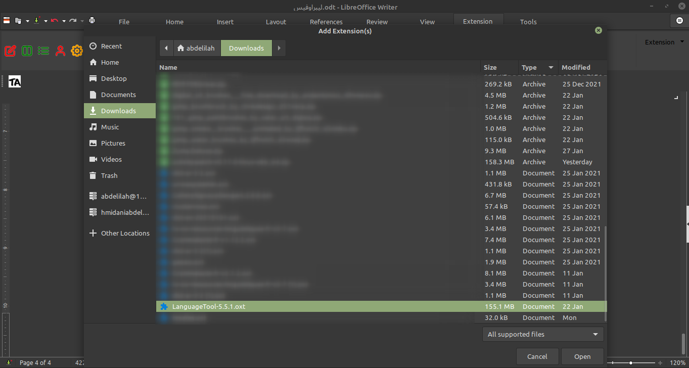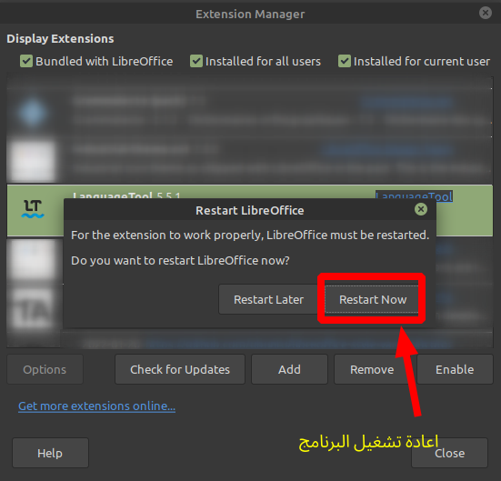 - الاظافة من داخل مستودع Libre Extensions