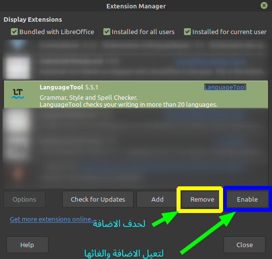 - رابط الضافة من مستودع Libre Extensions