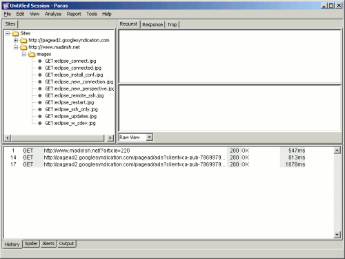 يقوم باروس بعد ذلك بمعالجة الطلبات ، بالإضافة إلى استقبال أي ردود يتم إرسالها مرة أخرى إلى المتصفح ، أثناء التصفح يتنصت باروس على كل حركة المرور من وإلى متصفح الويب ، بما في ذلك حركة المرور في الخلفية مثل مكالمات AJAX. لهذا السبب فمن المفيد استخدام علامة تبويب واحدة فقط في المتصفح أثناء تهيئتها لـ Paros أو يمكن أن تنتهي الواجهة بالكثير من المعلومات الدخيلة التي تتكون من تحديثات من علامات تبويب مفتوحة أخرى (مع ظهور AJAX ، من الرائع كم يحدث بالفعل في كل صفحة ويب مفتوحة في متصفح).