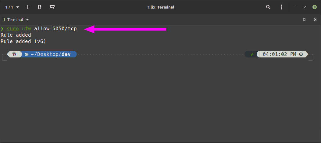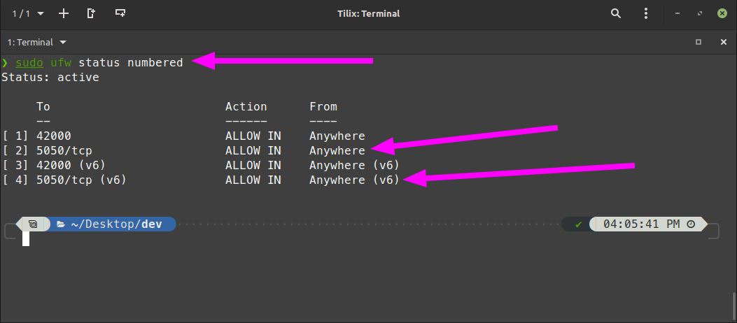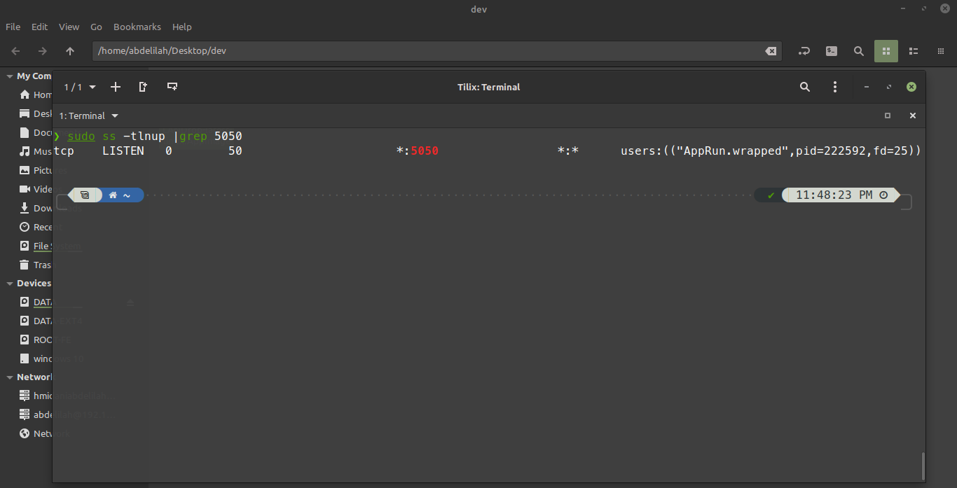 لتأكد من المنفد المستعمل قم بالأمر التالي