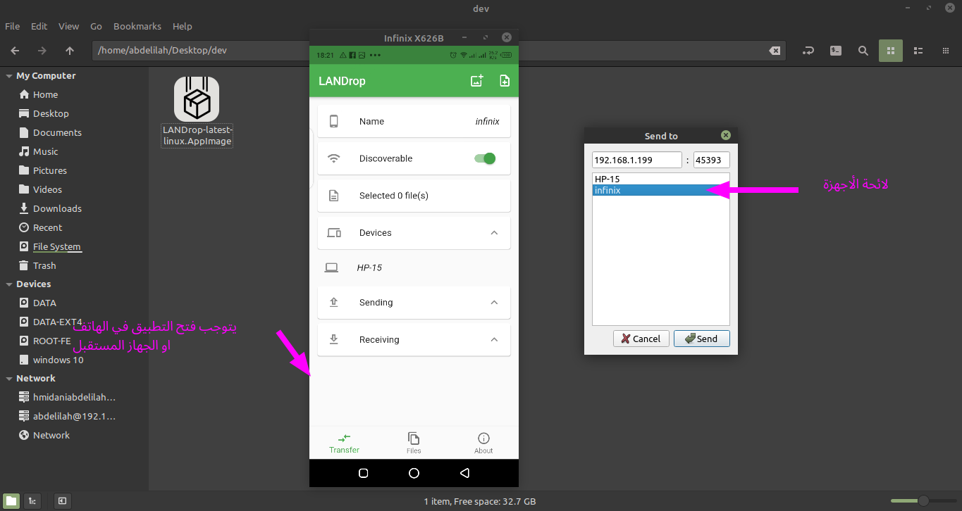 - مفتوح المصدر لإرسال واستقبال أي ملف من أي جهاز في شبكتك