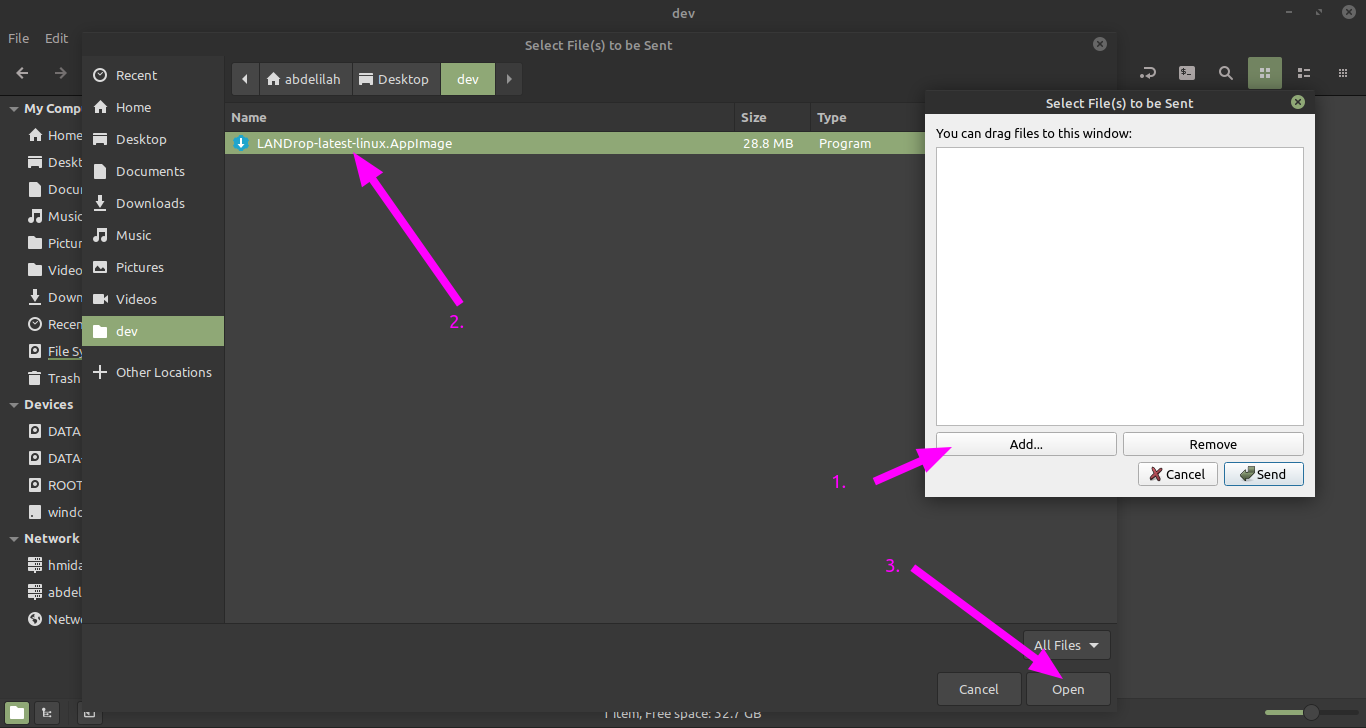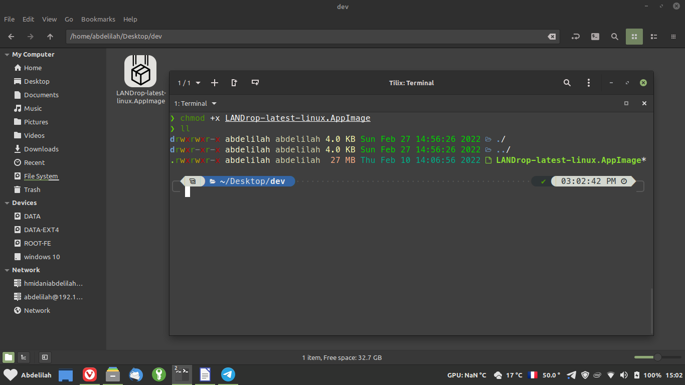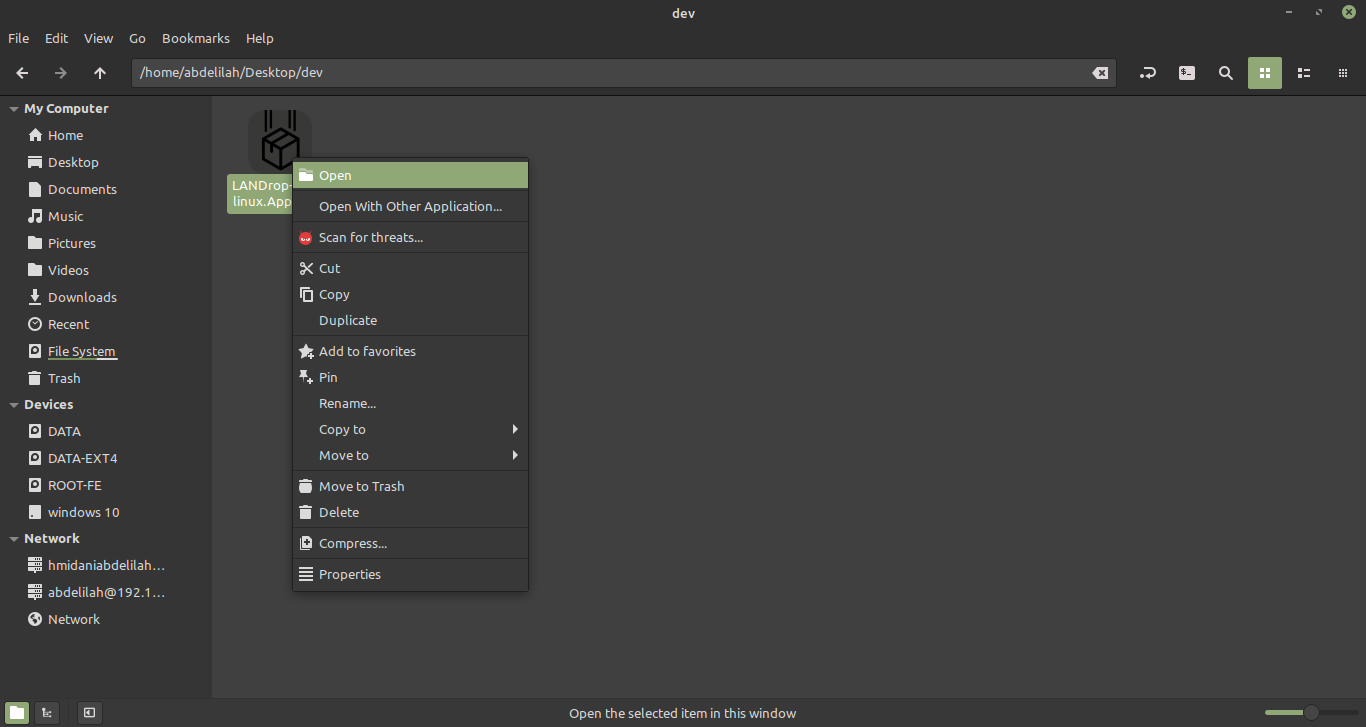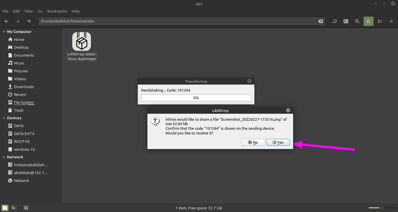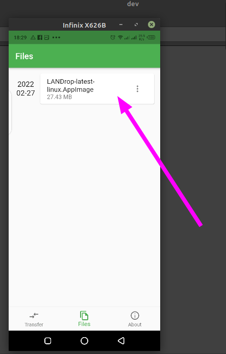لتحميل البرنامج AppImage من الرابط التالي: https://releases.landrop.app/LANDrop-latest-linux.AppImage