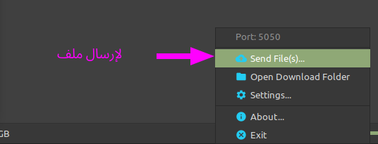لإرسال ملف قم بالطريقة التي سبق أن قم بها للوصول إلى إعدادات البرنامج