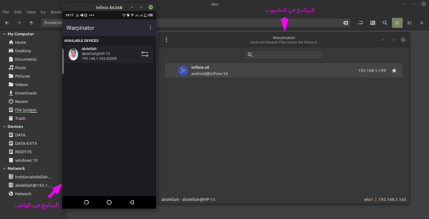 رابط البرنامج: GitHub - linuxmint/warpinator: Share files across the LAN
