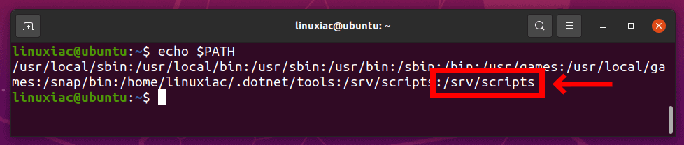 export PATH=$PATH:/srv/scripts