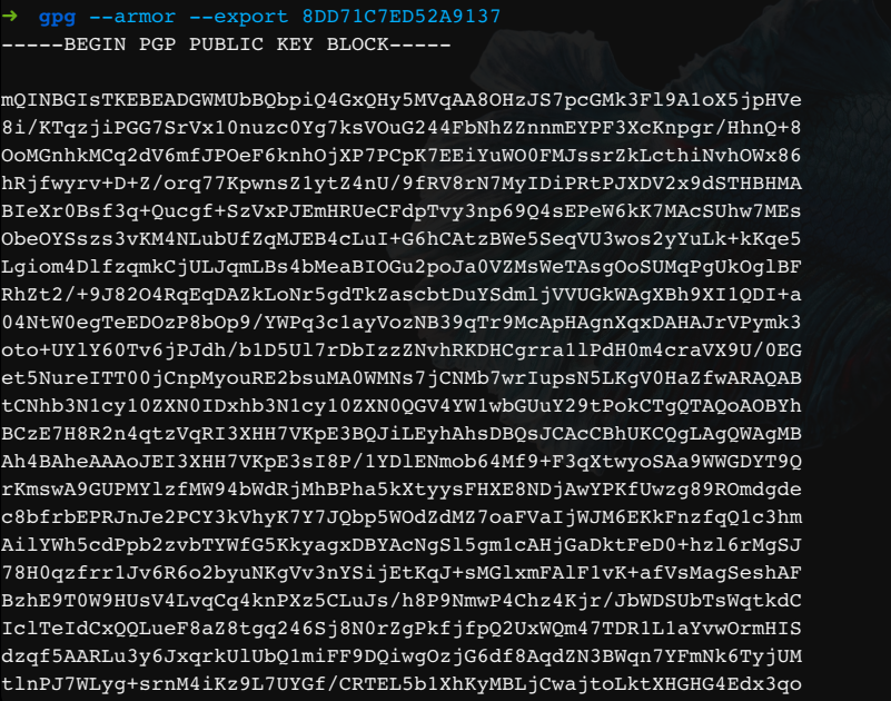 قم بنسخ الايدي واكتب هذه الامر بتبوعا بالايدي الذي نسخته gpg --armor --export