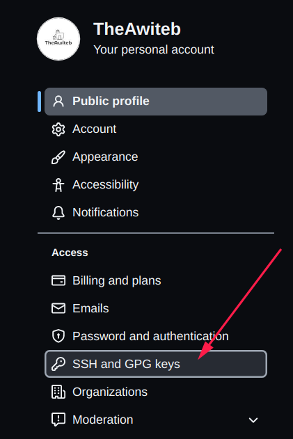 وبعدها الى مفاتيح ال SSH و GPG اسم الخانة ( SSH and GPG keys )