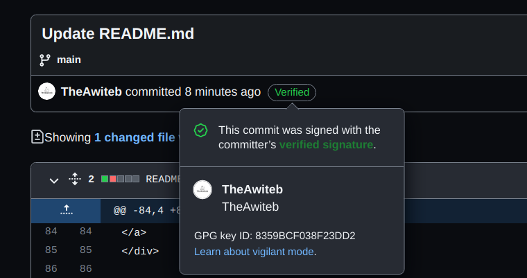 للاسف، من السهل تزوير عملية في GitHub بمعنى اظهار انه من قام بعمل هذه العملية هو شخص ولكنه في الحقيقة شخص اخر، مثل هذه العملية يظهر لنا ان من قام بها هو لينوس تورفالدس ولكنه في الحقيقة @Dwaseel لذالك يجب عليك وضع التوثيق ليتم الوثوق بعملياتك التي تجريها في GitHub