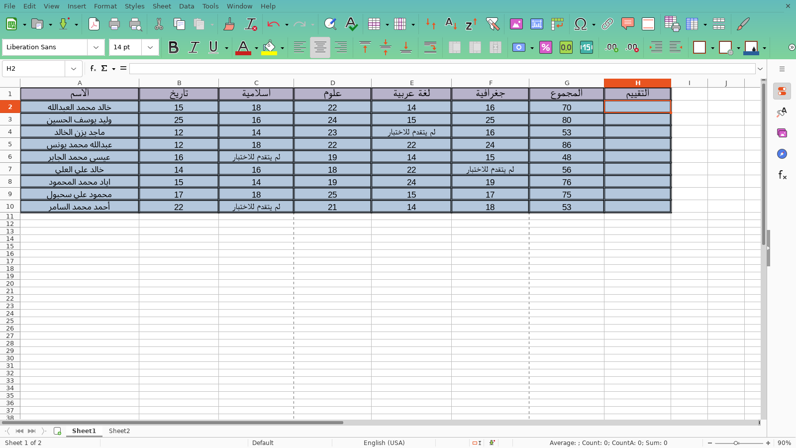 في البداية نحدد الخلية المطلوبة وفي مثالنا ستكون H2