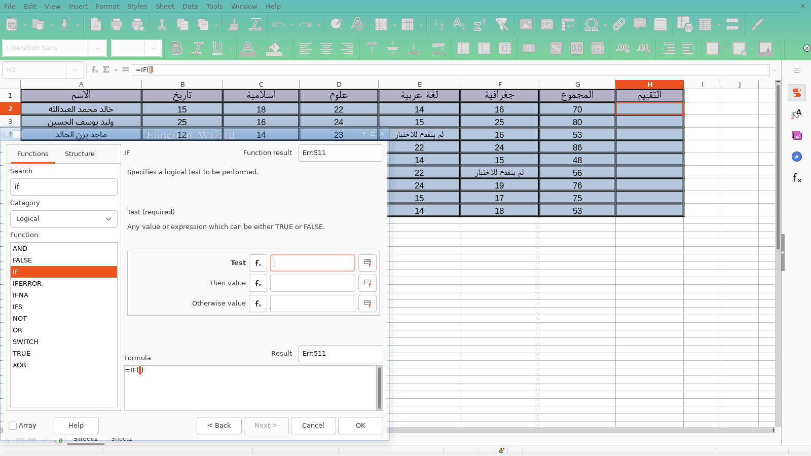 هذه النافذة الخاصة بدالة If