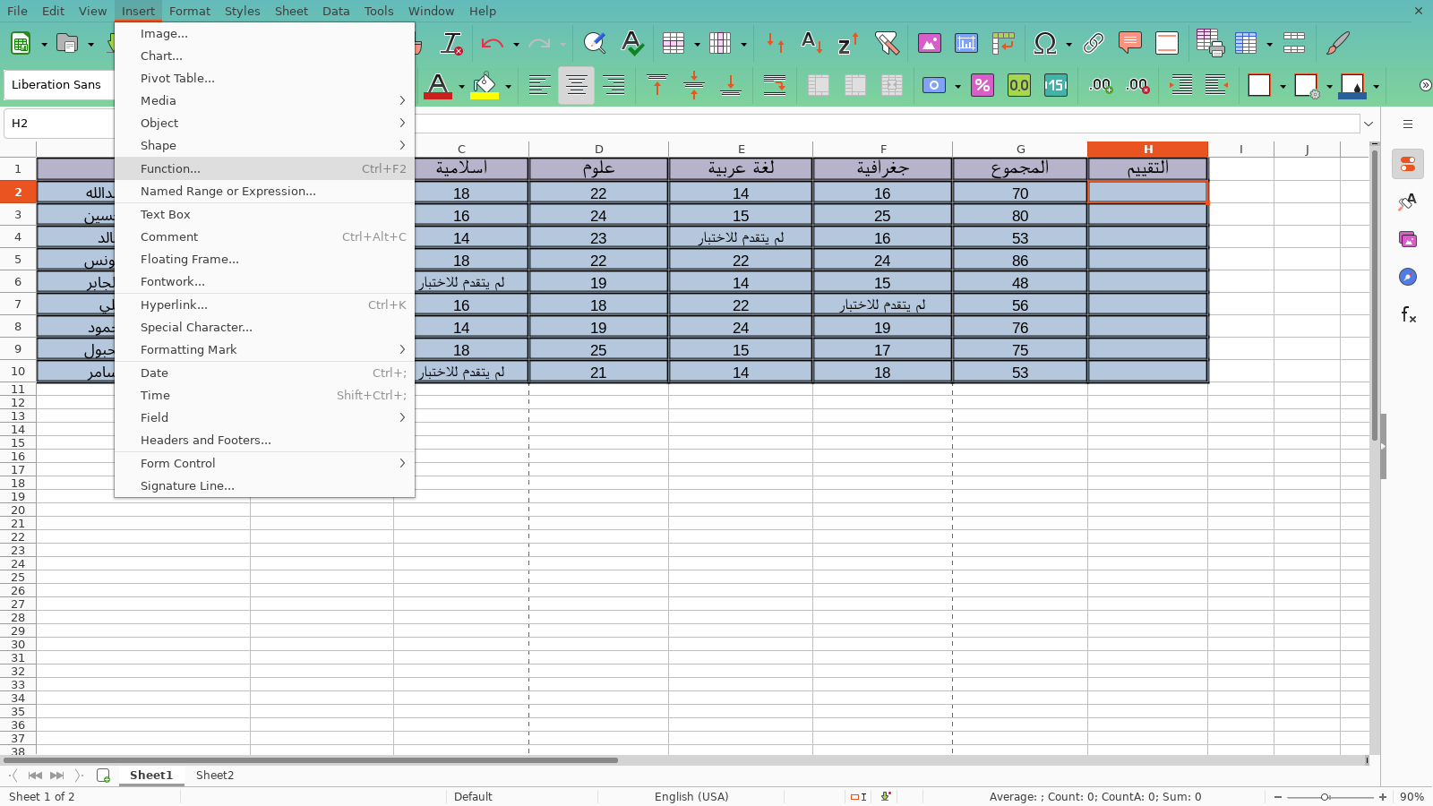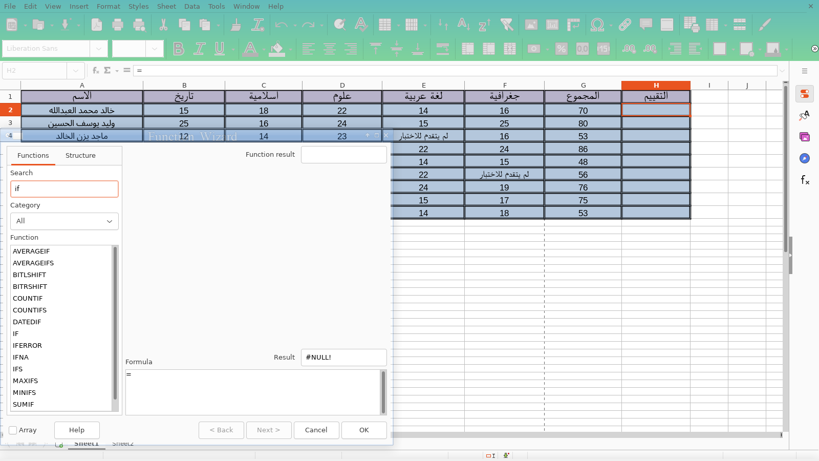 في المثال السابق استخدمنا دالة الجمعsum لجمع نتائج الطلاب