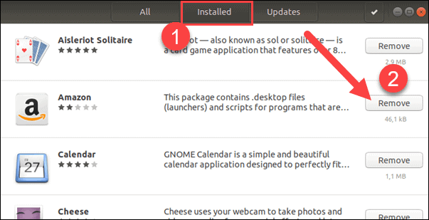 هناك عدة طرق لإزالة حزم البرامج من أوبونتو وهناك أيضاً خيارات متعددة لإزالة تلك الحزم سواء باستخدام واجهة المستخدم (GUI) أو من خلال طرفية أوبونتو (سطر الأوامر).