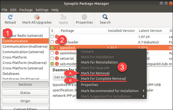 2. استخدام مدير الحزم (Synaptic Package Manager)
