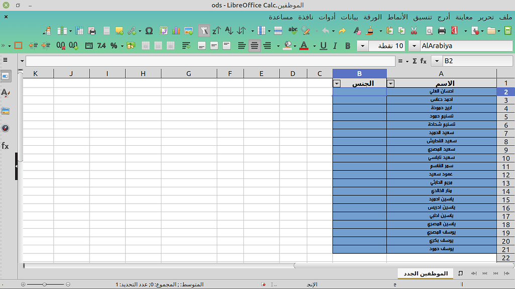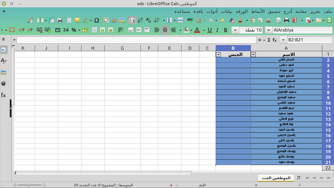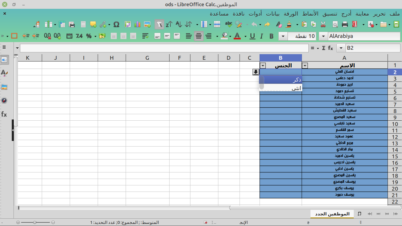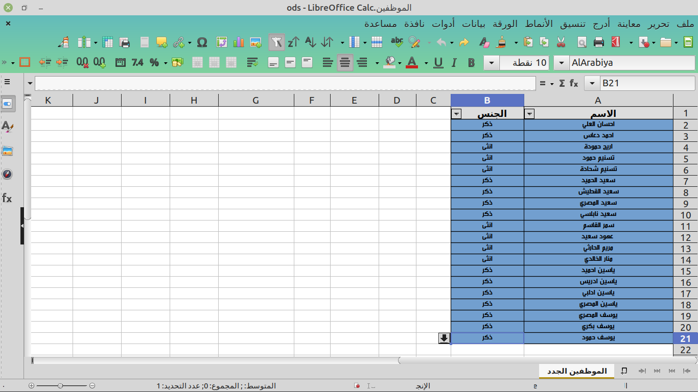 طبعا هذه البيانات الموظفين وسندخل الجنس بحسب البيانات المتوفرة لدينا