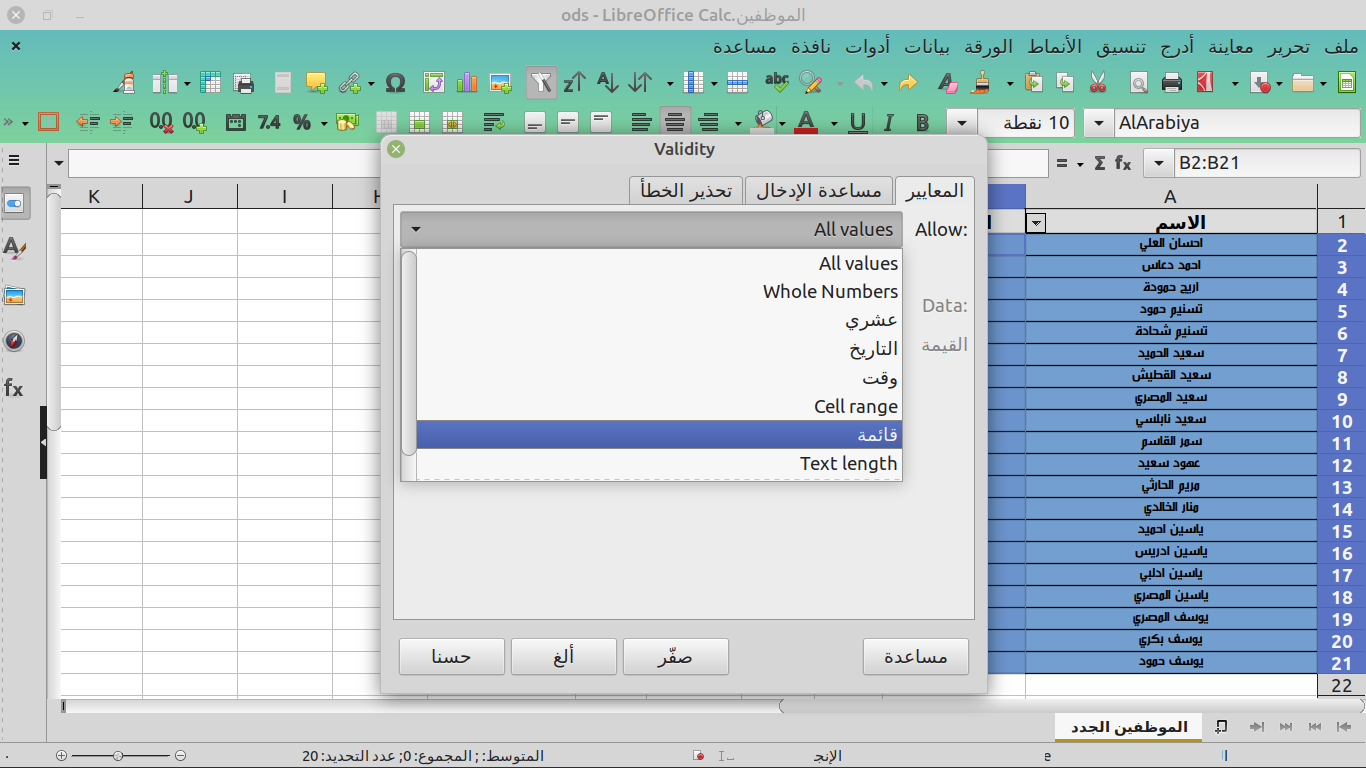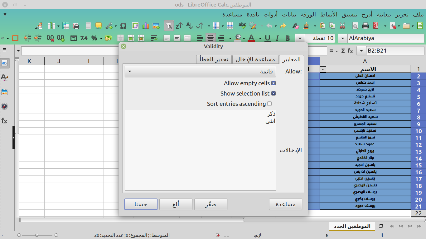 بهذه الطريقة نكون انشأنا قائمة منسدلة وحافظنا على طريقة الادخال من الاخطاء من قبل المستخدمين