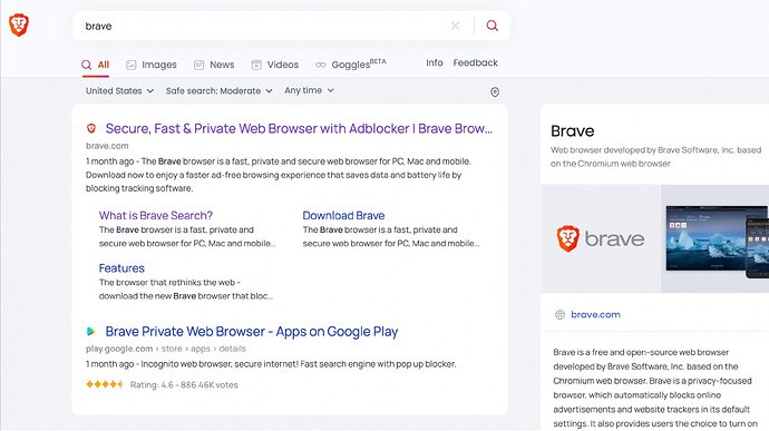 الصراحة محرك بحث Brave ممتاز, واراه الافضل في النتائج, ويعملون على فعلا تحسين تجرِبة البحث مع خصوصية ممتازة.
