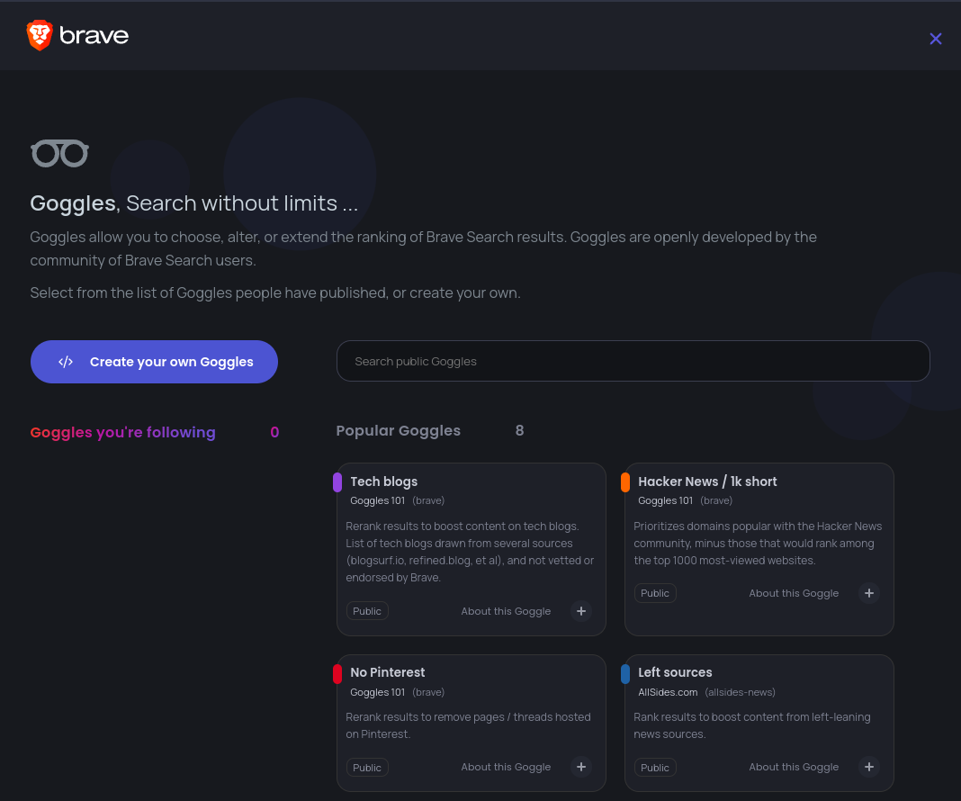 بإمكانك تفعيل Goggles بستخدام أمثلة Brave:
