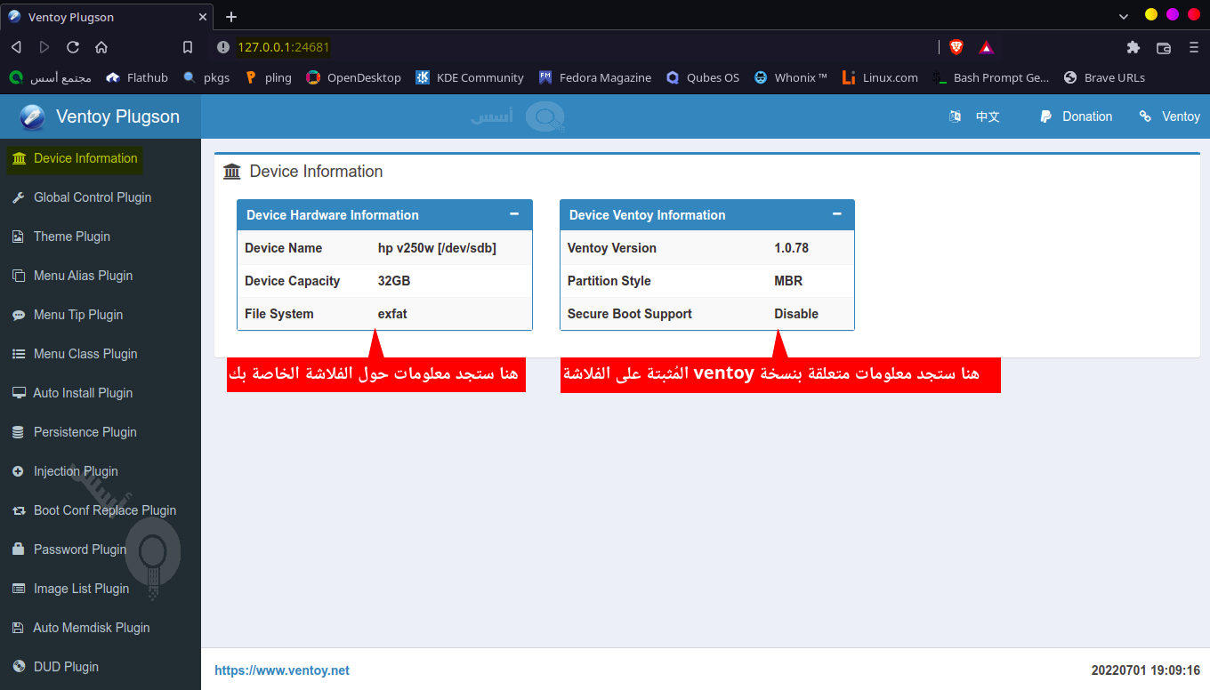 الخطوة الثالثة: تشغيل إضافة VentoyPlugson