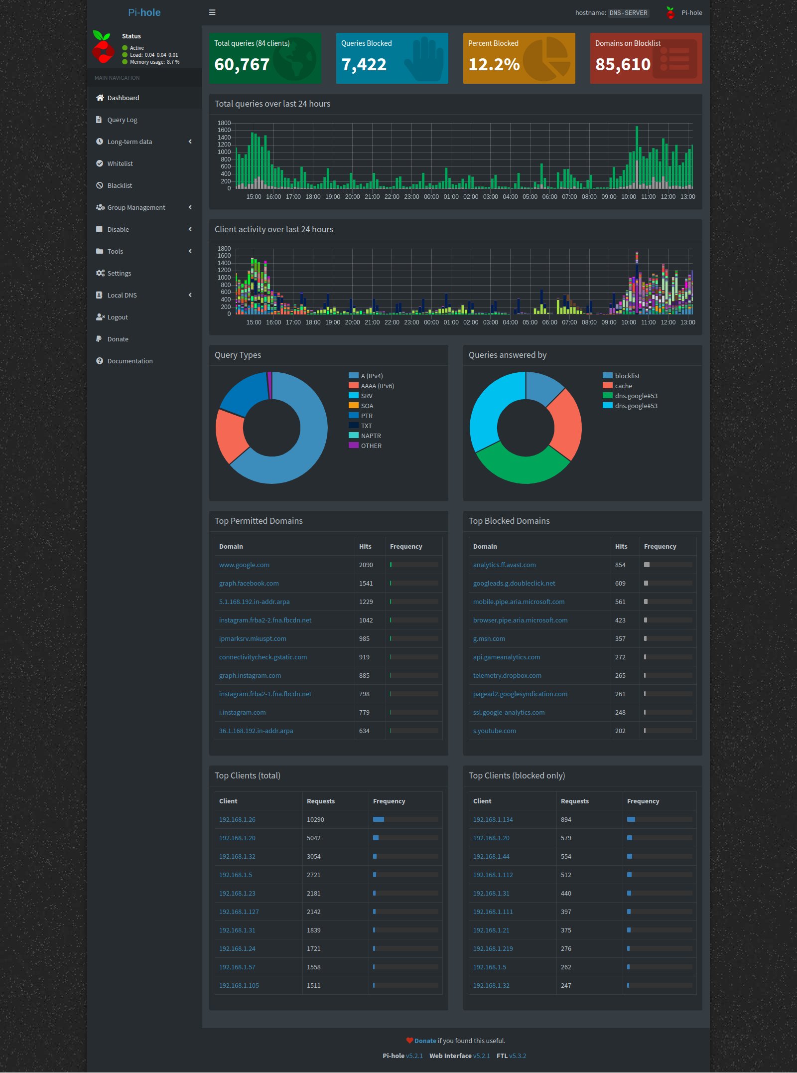 Pi-Hole ليس مجرد مانع للإعلانات، على حد سواء. يمكنه أيضا حماية الشبكة ضد جميع أنواع ناقلات الهجوم على شبكة الإنترنت. ويشمل النظام أيضا بوابة قوية على شبكة الإنترنت لرصد وتدقيق عملية Pi-Hole.