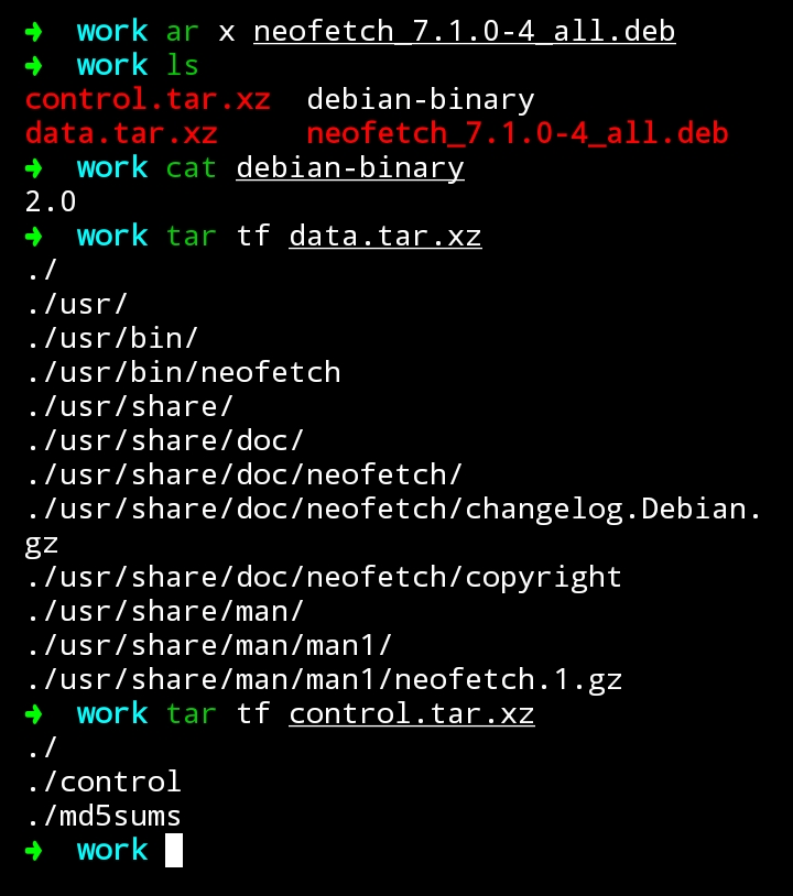 - ملف data: أرشيف tar مضغوط يحتوي على جميع الملفات التي يجب استخراجها من الحزمة وتثبيتها على النظام.