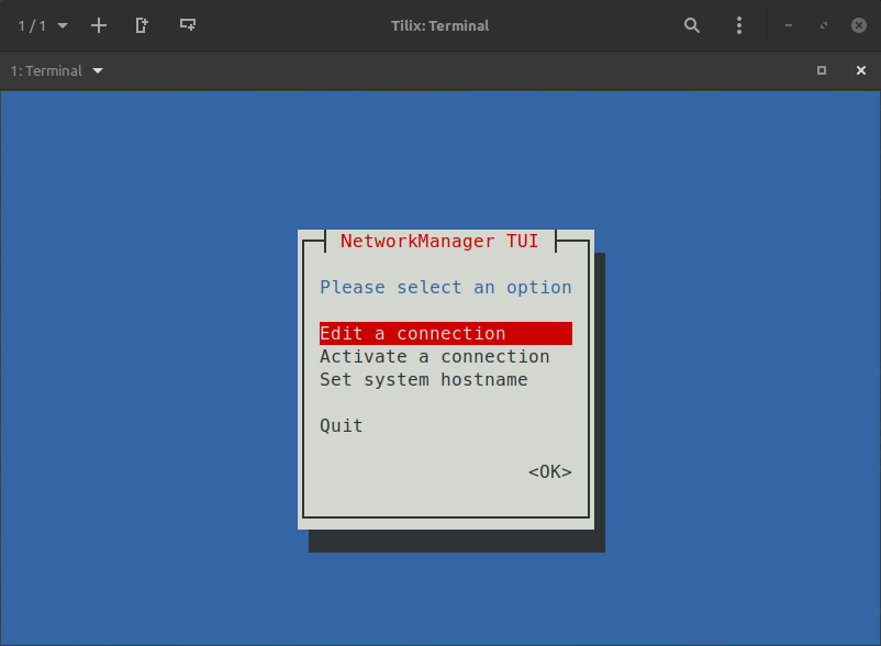 فقط نصب الأمر nmtui إن لم يكن متوفر وقم بإعداد الشبكة