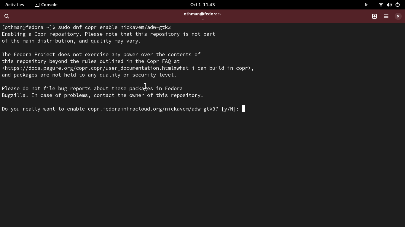 مدير الحزم dnf عند استعمال مستودع copr سيقوم بتنبيهك بأنه غير رسمي بعكس apt مع ppa.