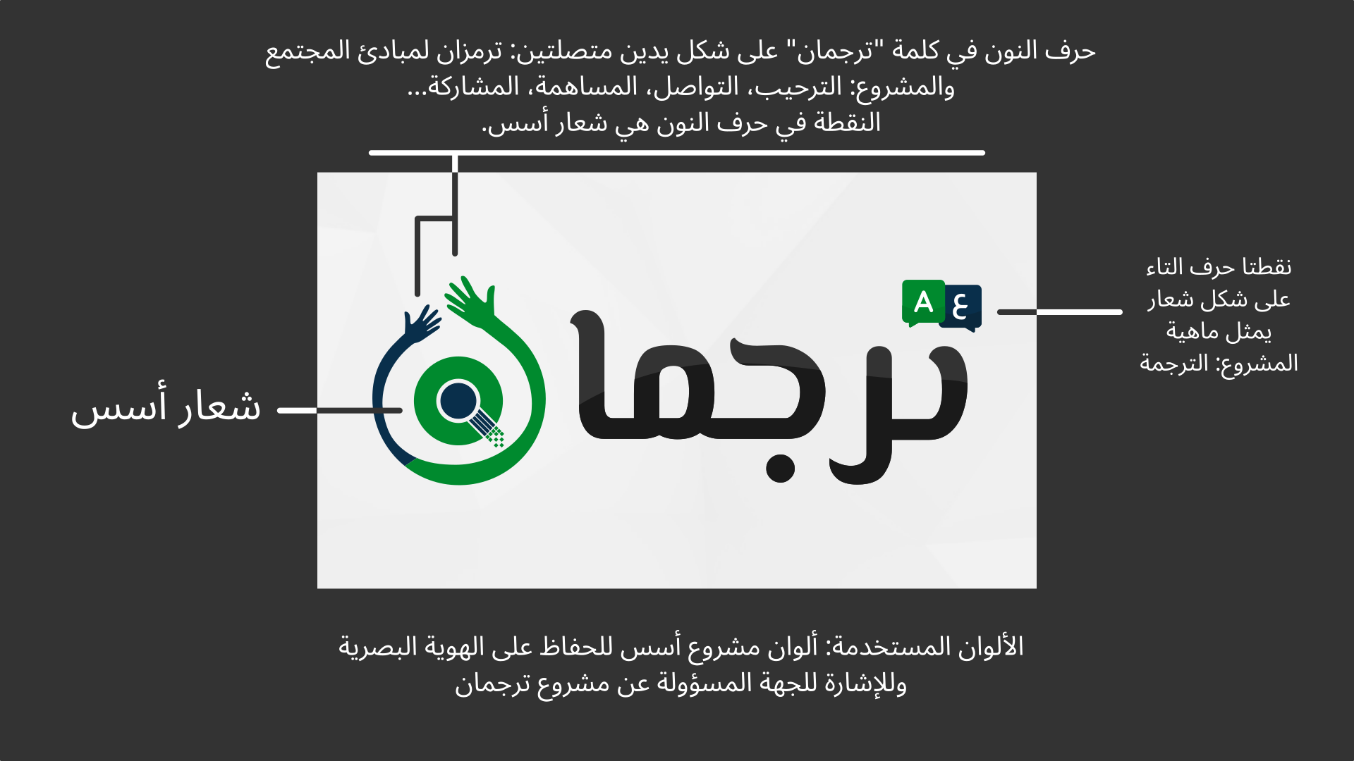 آخر فكرة سأطرحها هي فكرة إضافية للشعار المبسط، حيث أضفت فيها إشارة لآلية عمل مشروع ترجمان باستخدام git: