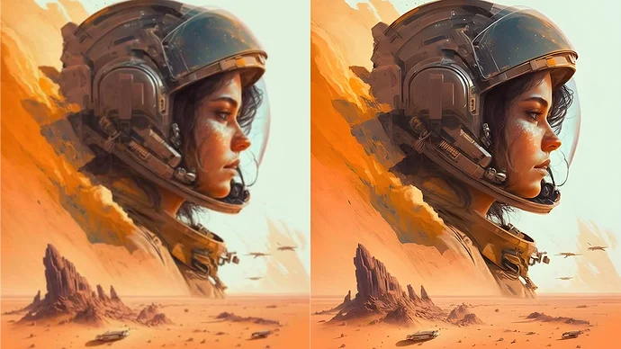 ولتعديل الدقة بالذات عند التعامل مع Dall e mini أو أي ذكاء اصطناعي ينتج صور منخفضة الدقة هو استعمال تقنية Upscale وهي ذكاء اصطناعي لتكبير الصور وزيادة دقتها يمكنك استعمال اي خدمة وهذا مثال عليها
