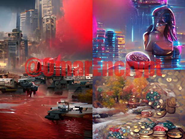ملاحظة مهمة:عند استخدامي بعض مشاريع الذكاء الاصطناعي - حسب فهمي لها - ظهر أنها تسحب النتائج من Google وتقوم بدمجها لإنتاج رسمة فنية و أحد هذه المشاريع هي Wombo Dream ولذلك فالكتابة بأي لغة ولو كانت كلمات ليس لها معنى سينتج صورة فنية بالرغم من العشوائية. وهذه بعض نتائجي من Wombo