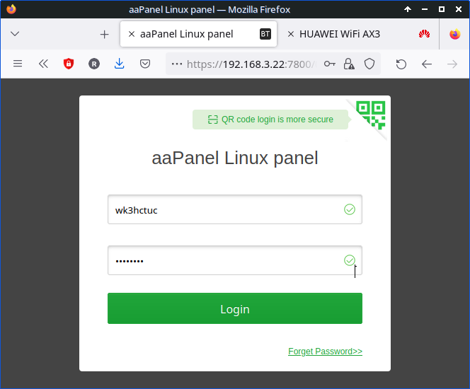 aaPanel Internal Address: https://192.168.3.22:7800/07c477da