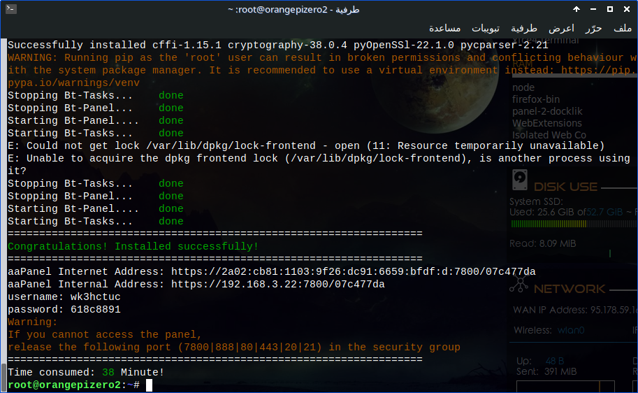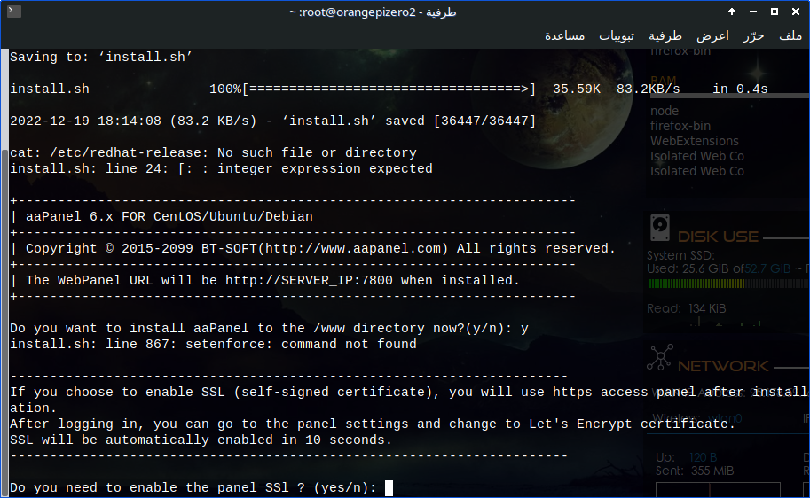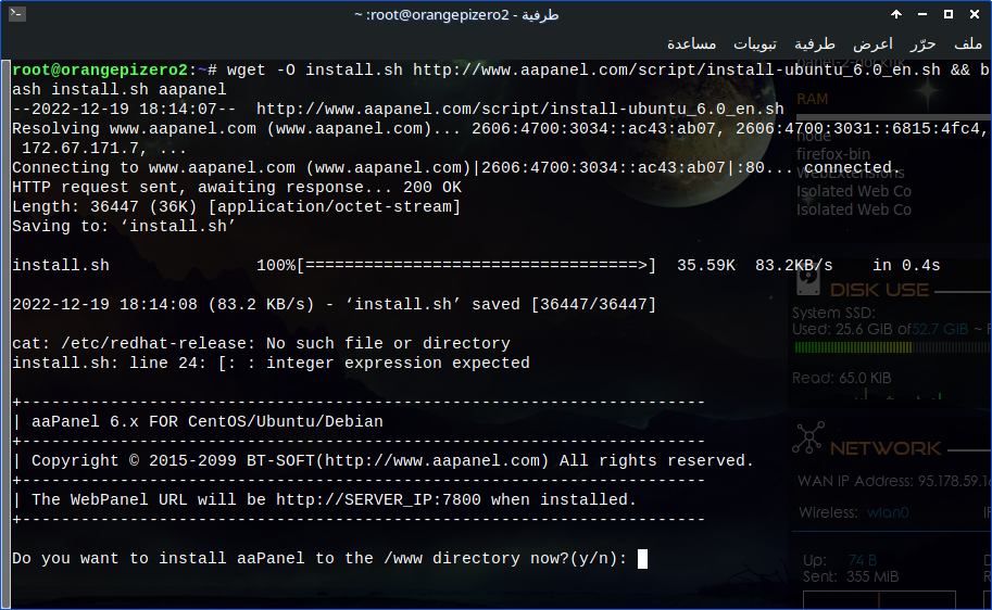 تجربتي مع Orange pi Zero 2 وتثبيت لوحة aapanel لـ إدارة الخادم و إستضافة المواقع