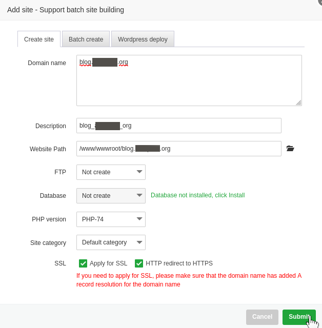 قم بالإشاره الى Apply for SSL و HTTP redirect to HTTPS لـ إنشاء شهادة ssl وفرض https على الموقع